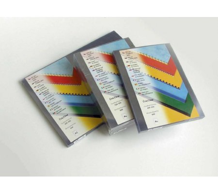 Desky z transparentní PVC folie, používané jako přední strana vázaných dokumentů.