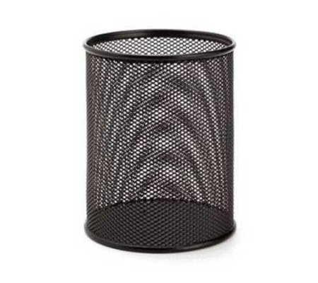 Drátěný kalíšek na kancelářské potřeby černý, průměr 110 mm, výška 135 mm, vnitřní i vnější strana dna s pěnovou podložkou.